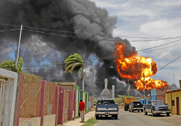 Las llamas de la refinería de Amuay seguían cubriendo ayer el cielo de Punto Fijo, en el noroeste de Venezuela, mientras las autoridades elevaban a 48 el número de muertos que dejó la explosión el sábado en el Centro de Refinamiento de Paraguaná (CRP), uno de los mayores del mundo.