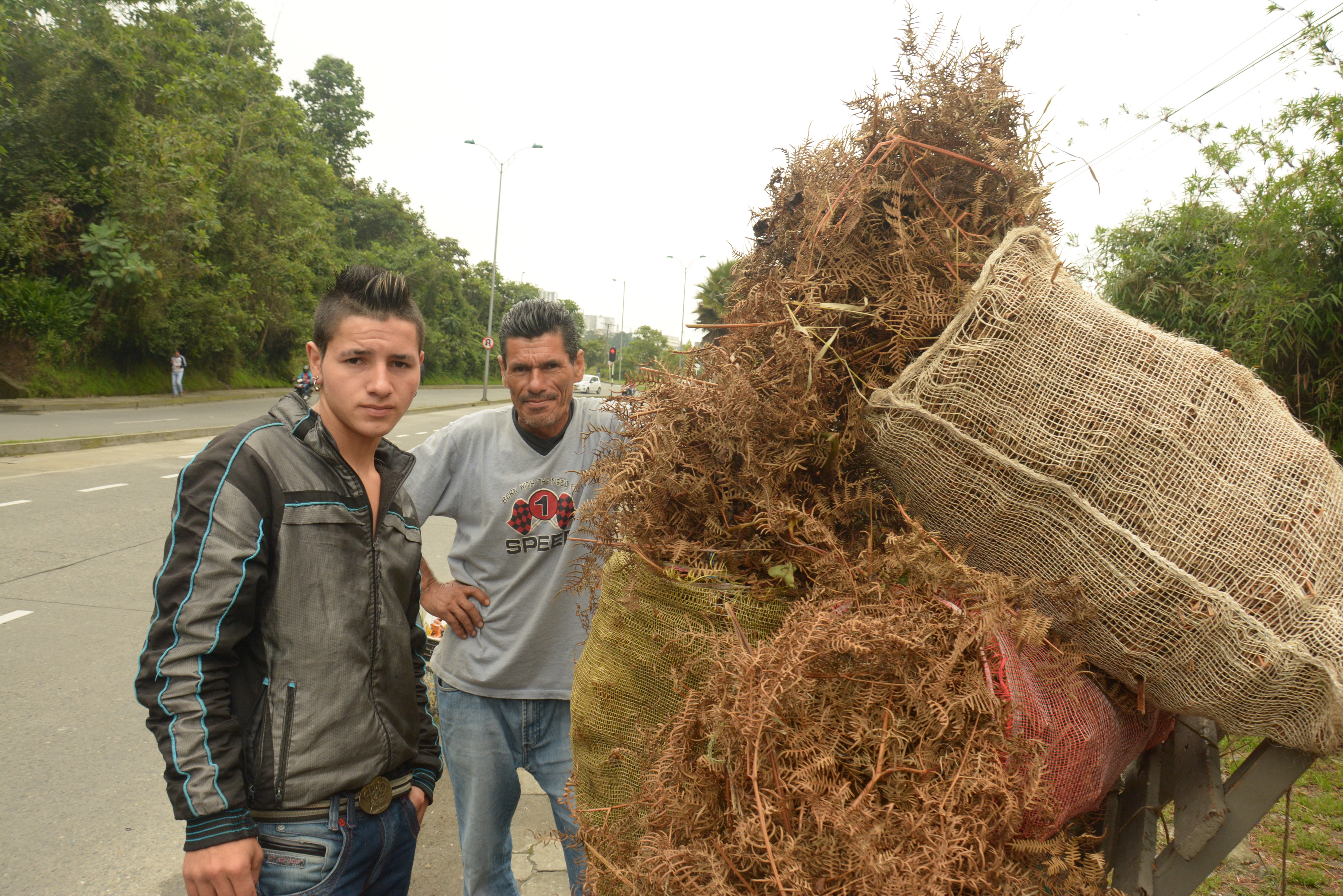 En el sitio está desde las 7:00 de la mañana hasta las 6:00 de la tarde, generalmente con Carlos, uno de sus cinco hijos. Desde los 8 años le ayuda a cortar, cargar y vender el helecho que toman de lotes por el Cerro de Oro o en la Vía al Guamo. Dicen que los dueños ya los conocen y les permiten hacerlo.