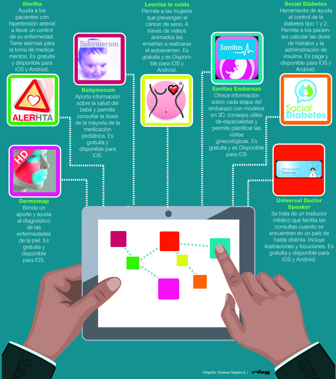 En el documento se revela la importancia que tienen estas aplicaciones en la vida de los seres humanos y resalta la diferencias entre todas ellas. "Unas por ejemplo, tienen la función de aportar información completa y detallada sobre alguna patología determinada . Otras educan y sensibilizan, monitorean la enfermedad, ayudan al diagnóstico, permiten el seguimiento del tratamiento y dan información como consejos últiles para mitigar la incidencia de la enfermedad", señala la investigación.