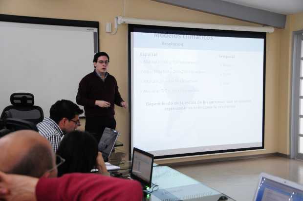 Juan Camilo Olaya ingeniero civil y ambiental especialista en hidrometeorología presentó el caso del análisis del río Chinchiná, para el desarrollo del Plan de Ordenamiento de cuencas de ese municipio. Recogió la información de lluvias de los últimos 40 años en el sector, las características del suelo y el caudal.