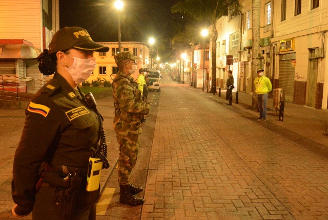 La carrera 23 y el Centro Histórico fueron custodiados por la Policía y el Ejército en la primera noche de toque de queda, no se podía mover un alma porque de inmediato se le mandaba a dormir.