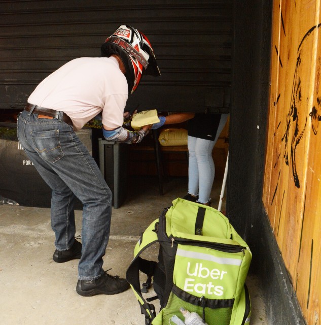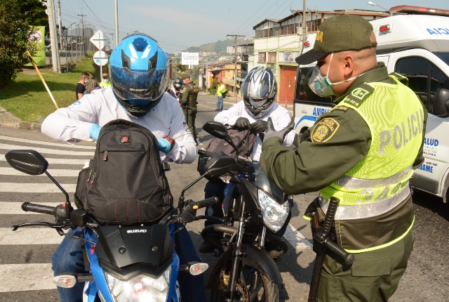 Domiciliarios y personal de primer orden tenían que transitar con permiso. Durante los primeros días de cuarentena, la autoridad con guantes y mascarilla les salió al paso.