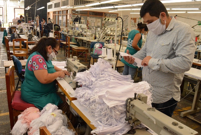 Reinventarse, parecía el título de una canción, se escuchaba en todas partes, pero también se ponía en práctica, como en esta empresa que empezó a confeccionar tapabocas al granel.