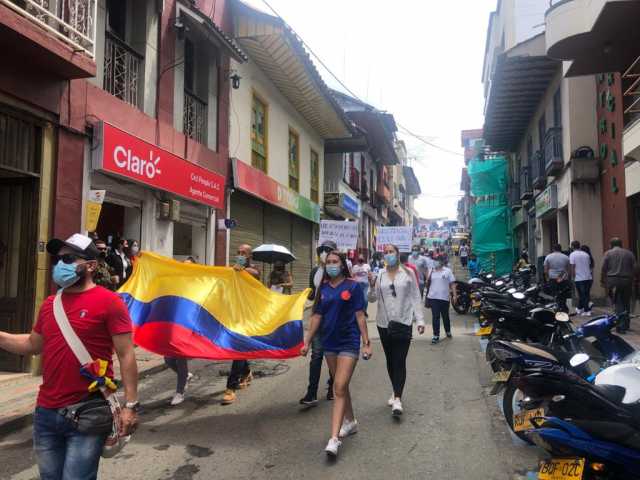 En el municipio unas 50 personas, en su mayoría docentes y estudiantes, recorrieron las calles principales gritando arengas en contra de las políticas tributarias y de salud del Gobierno Nacional. De manera pacífica mostraron carteles y banderas ondeadas mostrando su inconformismo.
