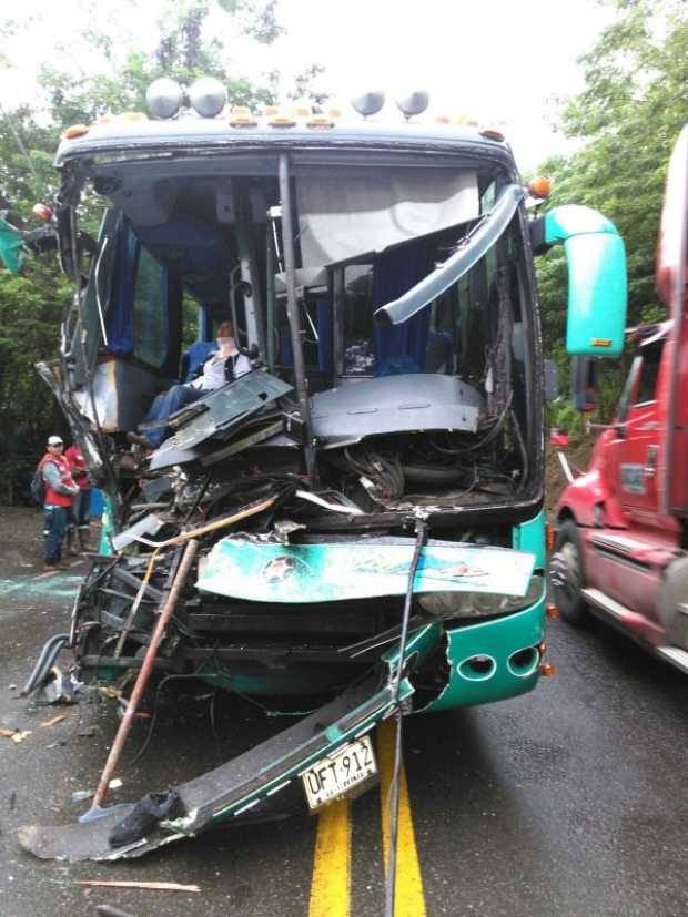 En el sector de la Mona cerca al peaje de Supía, vía Manizales-Medellín, hubo un accidente de tránsito esta mañana, en el que un bus chocó con un camión.