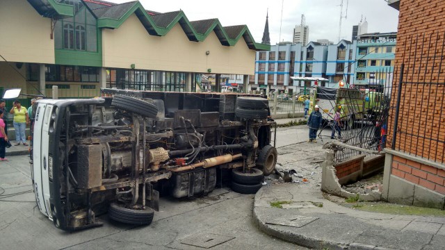 Una turbo,de placas WHK 575, se volcó en la carrera 16 con calle 18, detrás de la antigua Terminal de Transporte.