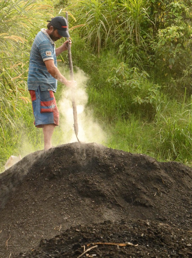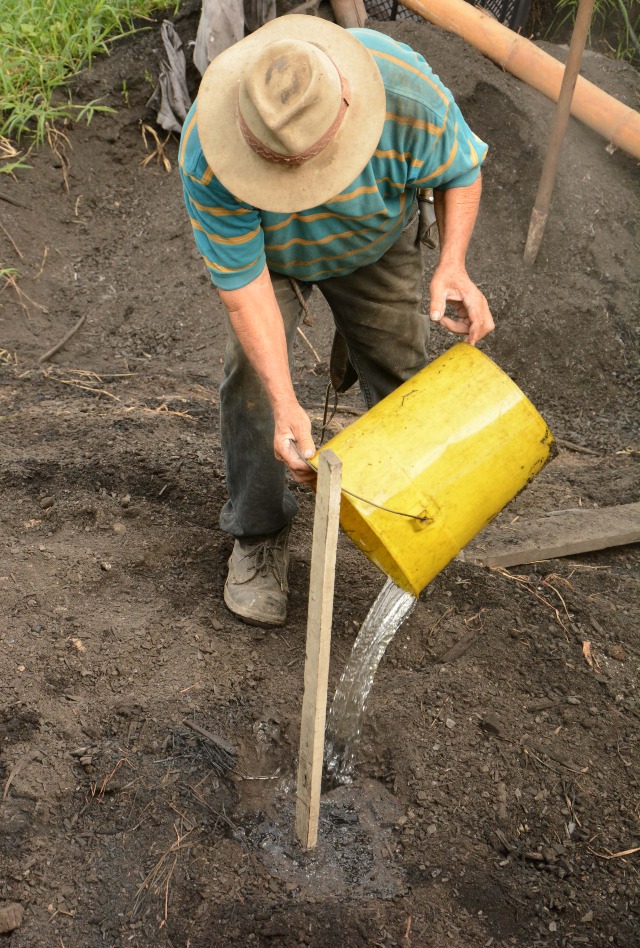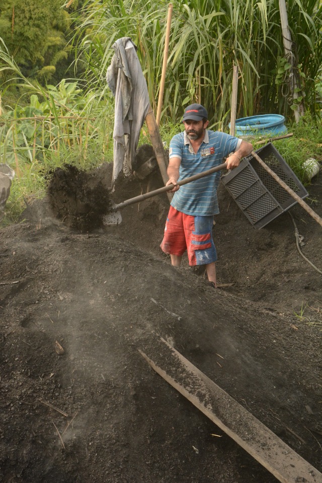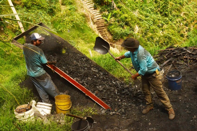 Jhon Jairo a sus 43 años tiene que estar apelmazando la tierra durante el día y unas tres veces en la noche para evitar agujeros que ayudan a avivar el fuego y se pierda el trabajo.