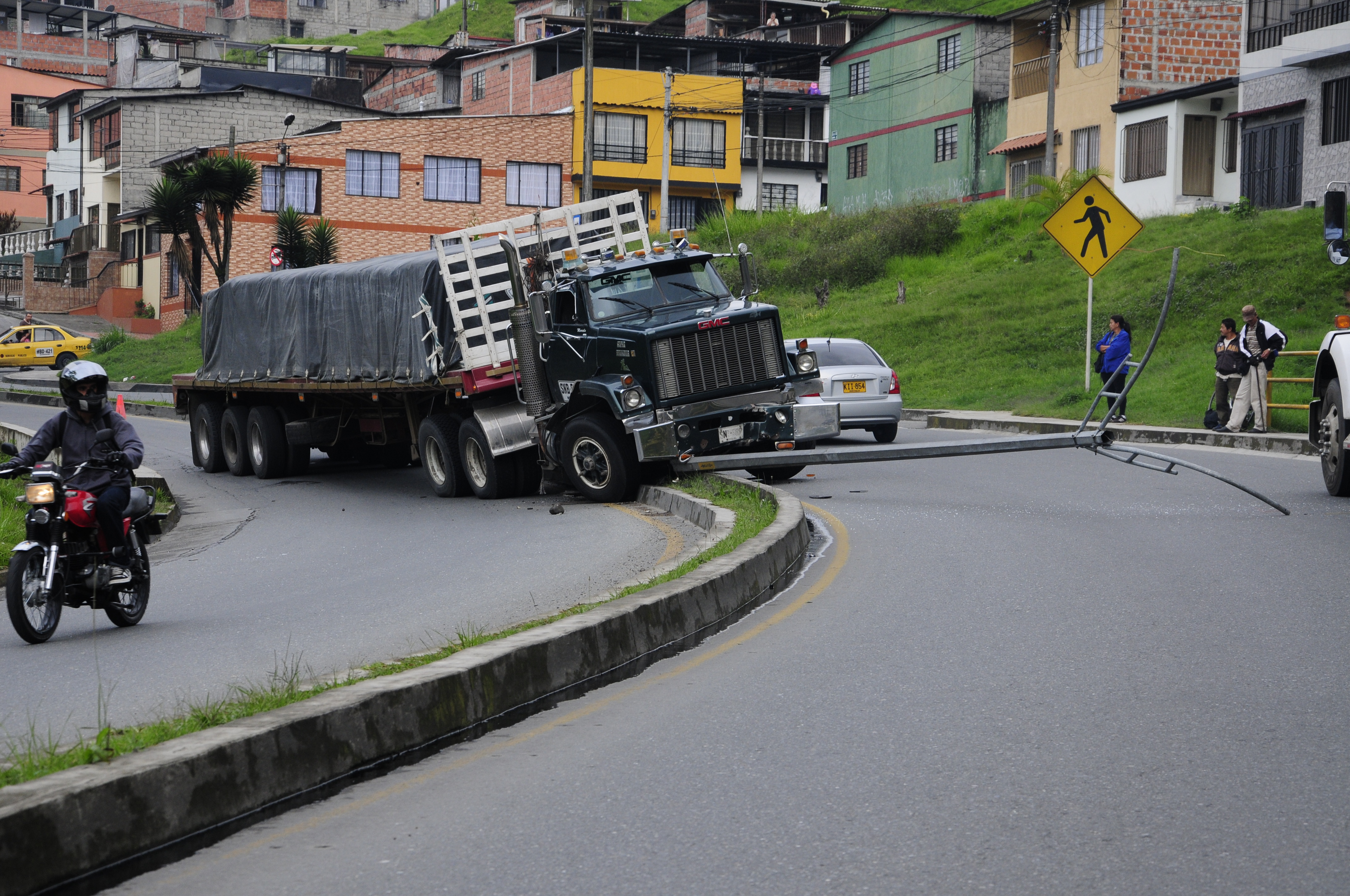 Cerrado carril de ida a la Terminal en la vía Panamericana, sector del barrio Guamal en Manizales, por una tractomula que está atravesada. Al parecer, el carro se quedó sin frenos y terminó en el separador. A esta hora hay congestión en sector, se recomienda tomar rutas alternas como la ruta 30.