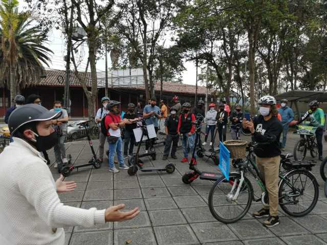 Participan unas 60 personas que se movilizan en bicicletas y patinetas eléctricas.