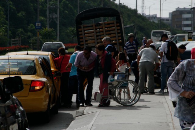 Tres taxis y cuatro carros particulares obstaculizan el carril derecho de la Avenida Kevin Ángel, en el sector del barrio Laureles. La congestión creceporque una usuaria de la Nueva EPS que está en silla de ruedas debe tomar un taxi y su traslado debe ser lento y cuidadoso. En medio de pitos, cambio de semáforo y carros que esperan parqueadero, los 51 mil afiliados en Manizales de la EPS viven esta situación hace un mes por el cambio de sede, la cual a pesar de brindarles mejor servicio, carece de una bahía para los taxis y la ambulancia.