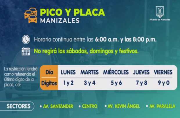 El alcalde de Manizales, Carlos Mario Marín, anunció este lunes en su cuenta de Facebook que la ciudad tendrá pico y placa.