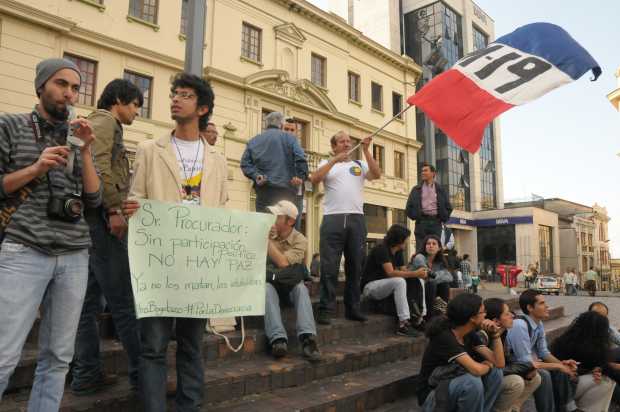 24 personas más acompañaban la protesta, entre universitarios, docentes y líderes del Movimiento Progresista fusionado con la Alianza Verde.