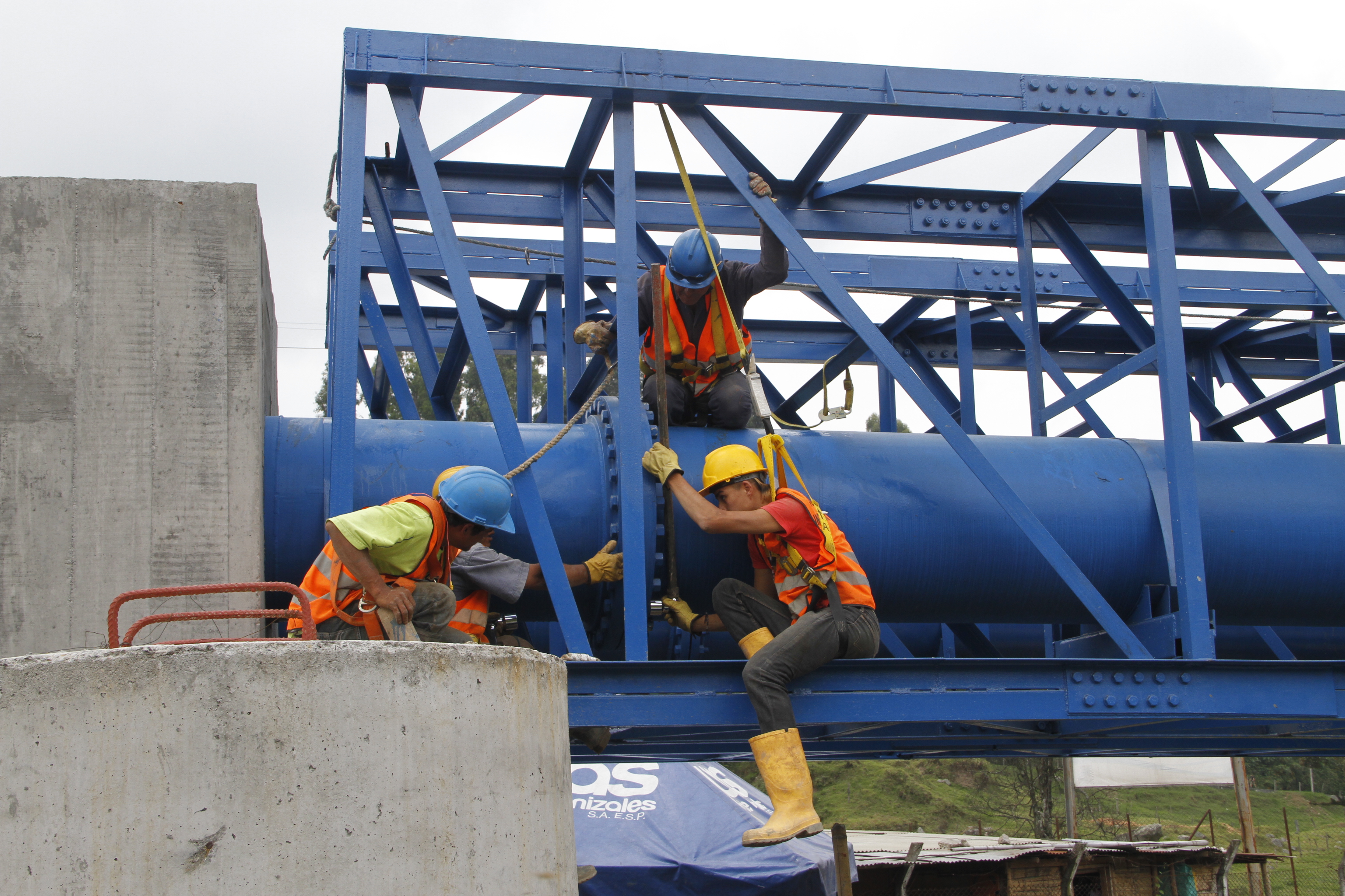 Entre la fábrica Sicolsa y la vía al Magdalena, sobre la Quebrada Manizales, terminaron de empalmar ayer a las 8:30 de la mañana las tuberías nuevas con otras viejas de 28 pulgadas, señala el subgerente Técnico (e) de Aguas de Manizales, Ricardo Sanabria.