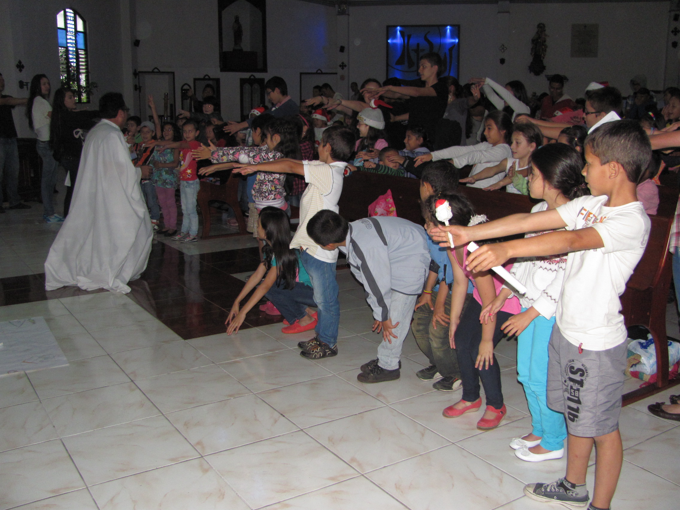 El bullicio de los niños se apoderó del templo durante ocho días, especialmente cuando ellos rezaban la novena. Algunos se agolpaban en las bancas que rodeaban el pesebre, esperando a que apareciera la figura del Niño Jesús sobre un manojo de paja.