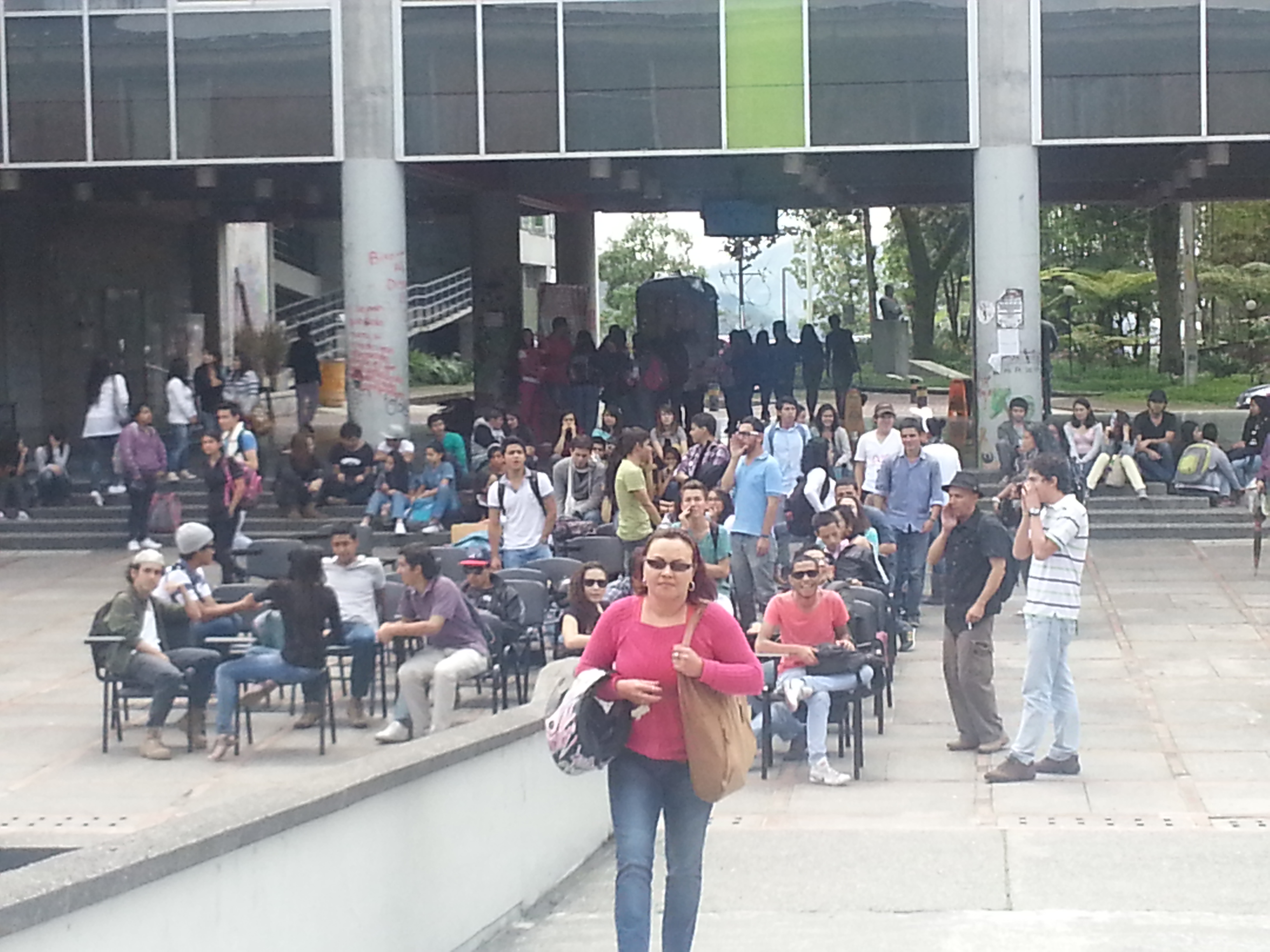 Unos 50 estudiantes de la Universidad de Caldas realizan un pupitrazo frente al edificio administrativo, sede Central, donde está reunido el Consejo Superior con la presencia de la viceministra de Educación Superior, Patricia Martínez. Exigen que se cumpla el pliego de peticiones.