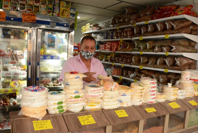 “Se ha ido reactivando el comercio, siguiendo los horarios y los protocolos. Vendía tintico y pintadito y la Policía me hizo entrar las mesas”, dice Víctor Marino Aristizábal propietario de Avícola los Andes, en el sector de La Nubia en el barrio La Enea.