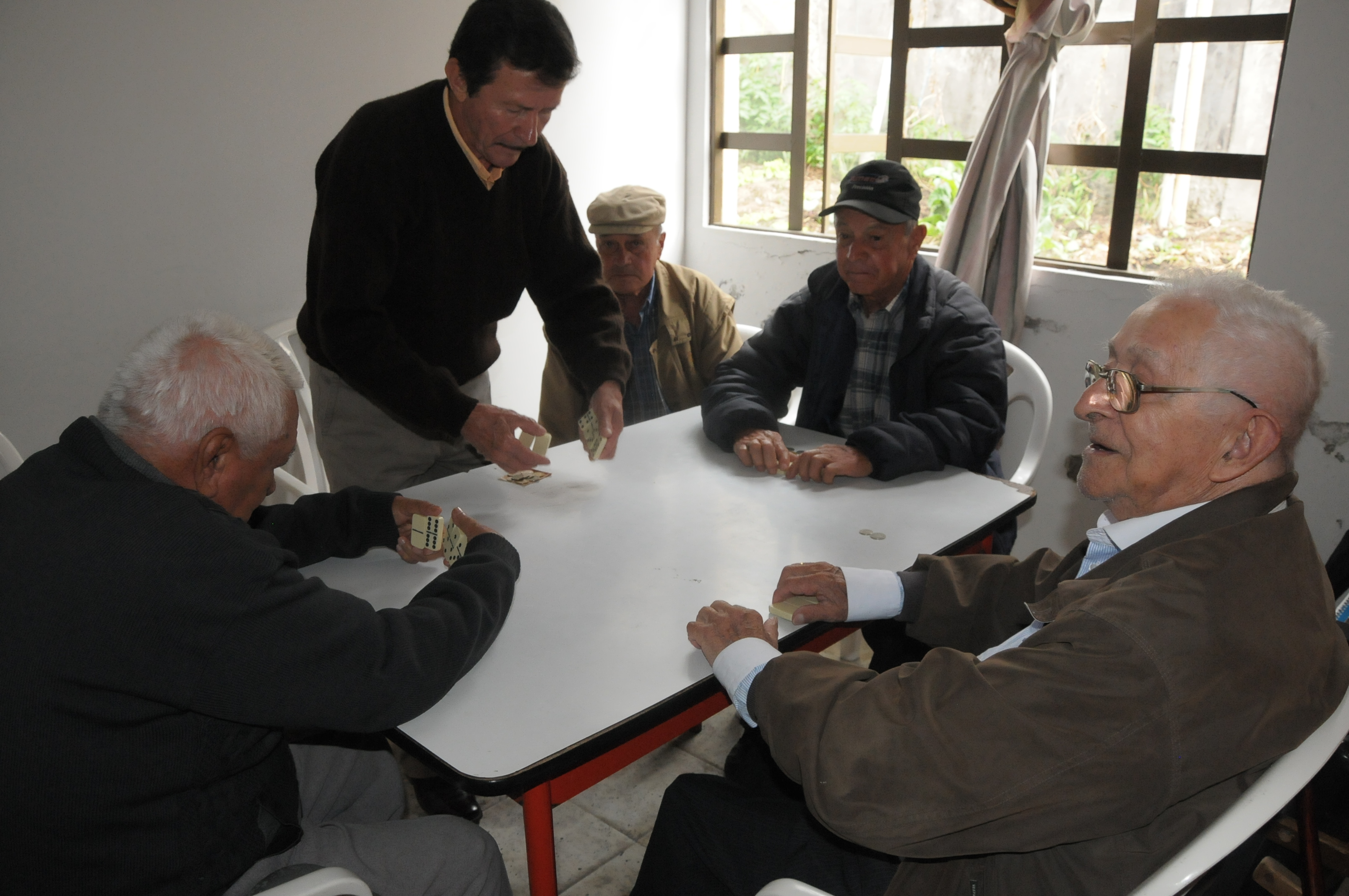 "Todos los días venimos a jugar, él nos pela a todos, nos tiene azotados", dicen entre risas sus compañeros de juego. Aunque pierdan contra don Rafael, todas las tardes regresan al Centro Día por la revancha.
