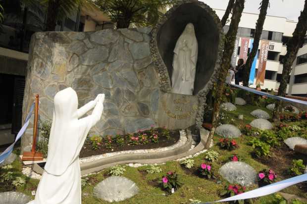 La gruta en la Universidad Católica de Manizales fue construida este año, y las imágenes de la Virgen y de Bernadette fueron elaboradas en Medellín.