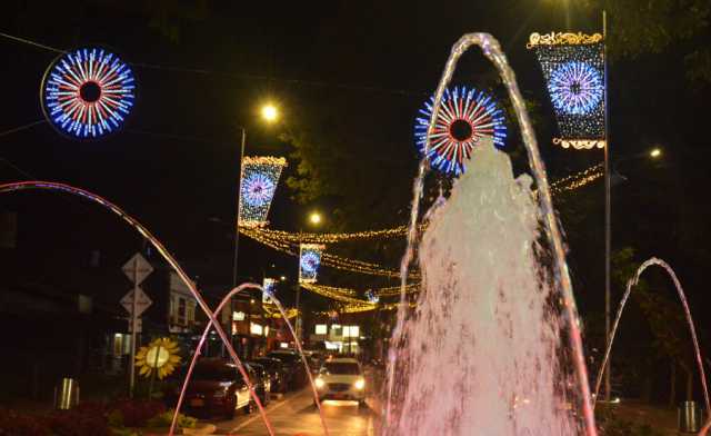 En Navidad la mayoría de lugares emblemáticos o turísticos se embellecen con el alumbrado, las fuentes de agua de la capital caldense no son la excepción. El juego de luces con los chorros de agua le dan vida aún más a los parques y las avenidas donde están ubicadas.