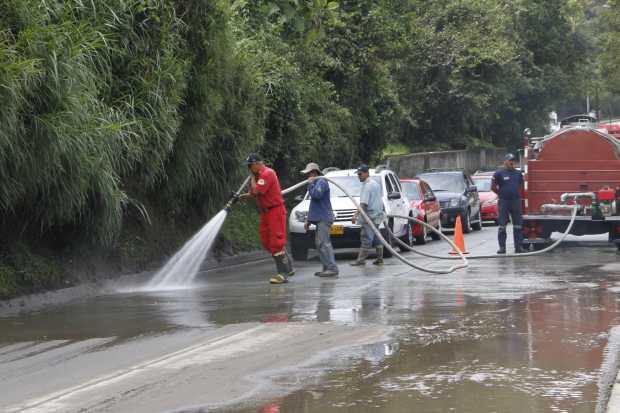 Debido a las lluvias de anoche el agua arrastró el material suelto que había dejado un movimiento de tierra en la construcción de la urbanización La Cecilia hasta la glorieta. Desde las 8:30 de la mañana el Cuerpo Oficial de de Bomberos de Manizales y la constructora empezaron a limpiar el sector, según Óscar Eduardo Toro, director técnico de la Unidad de Gestión del Riesgo.