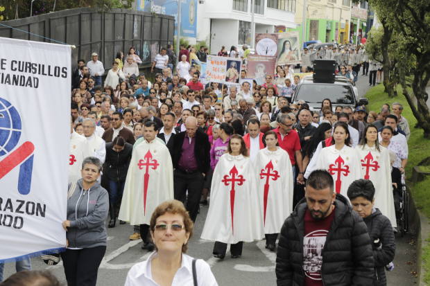 El olor a incienso predominaba. Era la primera imagen de la procesión del Sagrado Corazón de Jesús, que empezó a las 9:00 a.m. ayer en el Parque de la Mujer.