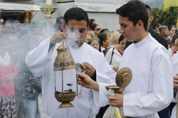 El seminarista Juan Ignacio Aricapa balanceaba de lado a lado el incensario, según él, para despertar la conciencia misionera e impregnando el ambiente. Explicaba, mientras agregaba más incienso, que este símbolo representa la fragancia que emana cuando los cristianos oran. "Dice la Biblia que el incienso es el olor suave de las oraciones llegando a Dios. También es el olor de la resurrección de Cristo".