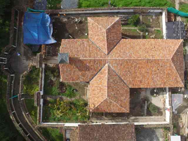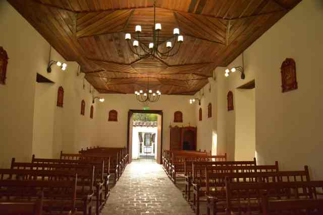 La estructura mantiene el piso original, que está hecho en tablones de barro, las paredes en tapia pisada, la cruz de la torre y sus dos campanas.
