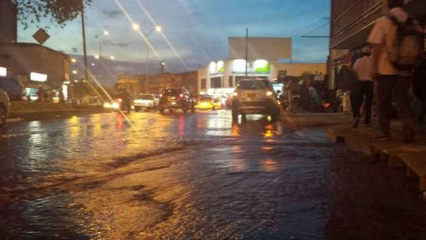 La calle 48 con Avenida Santander, frente a la Normal Superior de Caldas, se inundó ayer.