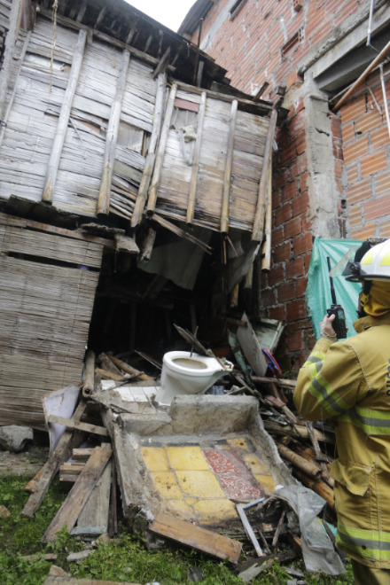 Antonio José Ospina cuenta que entre 8:00 y 8:30 a.m. vecinos tuvieron que llamar a Bomberos para sacar a su mamá, ciega y de 72 años, pues el baño y parte de la cocina de la casa se habían desplomado, y ella estaba sola. "Es una casa en bahareque, muy vieja, tiene unos 70 años. La cocina tenía unos rotos y quizá por ahí se fue filtrando agua, pues ha llovido mucho".