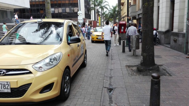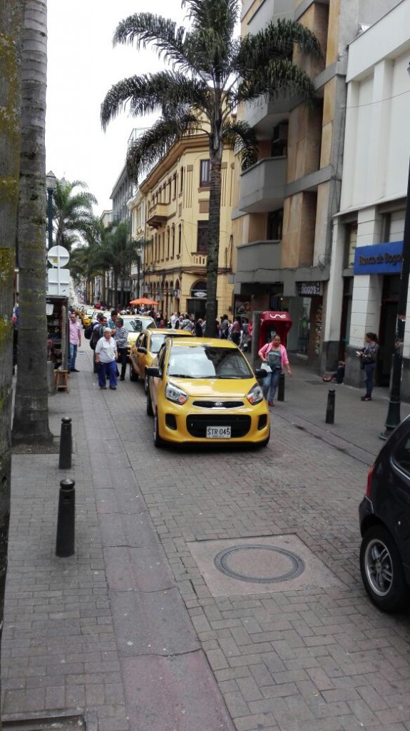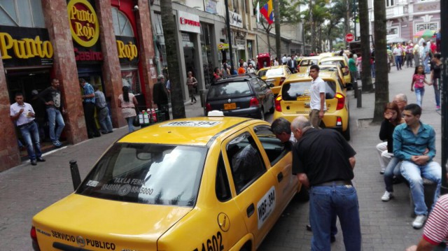 Taxistas de Manizales se movilizan a esta hora en una caravana por las calles del centro de la ciudad.