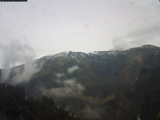 Así lucía esta mañana a las 8:54 de la mañana, el Volcán Nevado del Ruiz, desde el sector Azufrado. Foto tomada del www2.sgc.gov.co