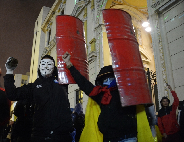 En la primera línea de la protesta está Julián*, quien regresó a las calles luego de ser liberado tras ser retenido por la Policía esta semana, con un grupo de 24 jóvenes.