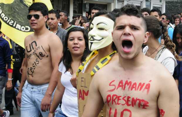 Cerca de mil estudiantes y algunos profesores participaron ayer de la marcha denominada Desnudatón para apoyar los propósitos de la MANE y exigir soluciones al Gobierno Nacional frente a la crisis de la educación superior.