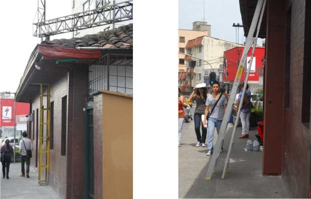 En la carrera 23, entre calles 55A y 56, instalaron hace 11 días la base de una valla ocupando parte del andén. Así estaba hace una semana (foto izquierda). Ayer, la base ya estaba así, con un recubrimiento en lámina del mismo color de la fachada.