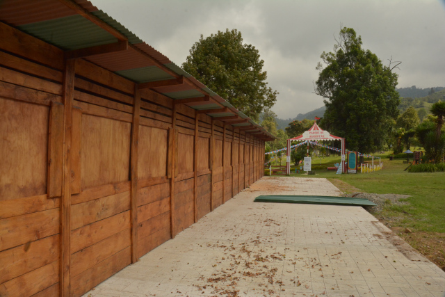 En medio de tanto verde se notan otros lunares. Edificaron en concreto una plancha de 33 metros de frente por 5 de fondo, sobre la que construyeron 8 casetas de 3x3 y una más pequeña en madera, de árboles de pino que han cortado de los terrenos del parque. Allí trasladarán a los vendedores de comestibles ubicados a un costado de la piscina antigua.