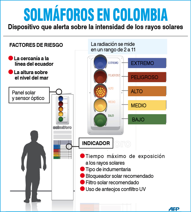Se les llama solmáforos. No sirven para controlar el denso tráfico de nuestras ciudades colombianas sino que nos alertan sobre la insidencia de los rayos solares en nuestra piel y en general en nuestra salud.