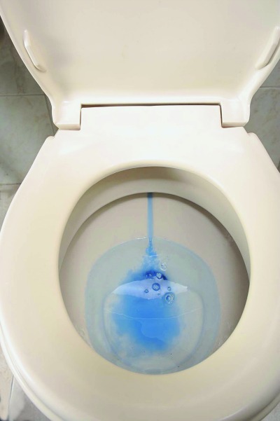 1. Vierta un poco de colorante de alimentos en el tanque del sanitario.