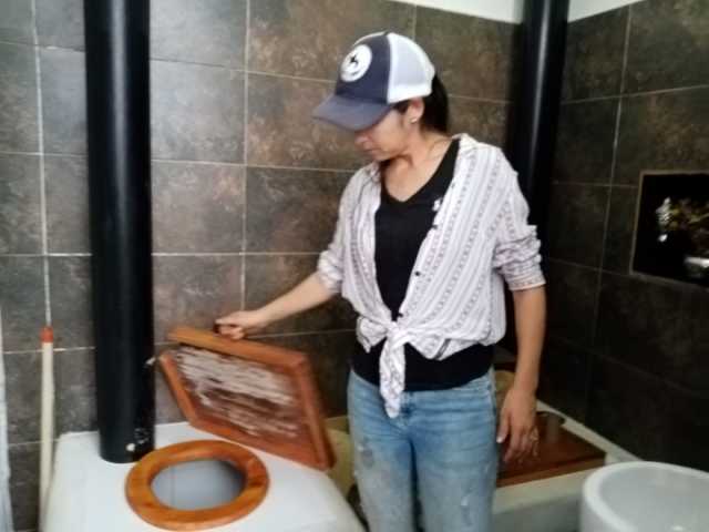 Juliana Jaramillo muestra cómo es una compostera que remplaza al sanitario y no vierte desechos.