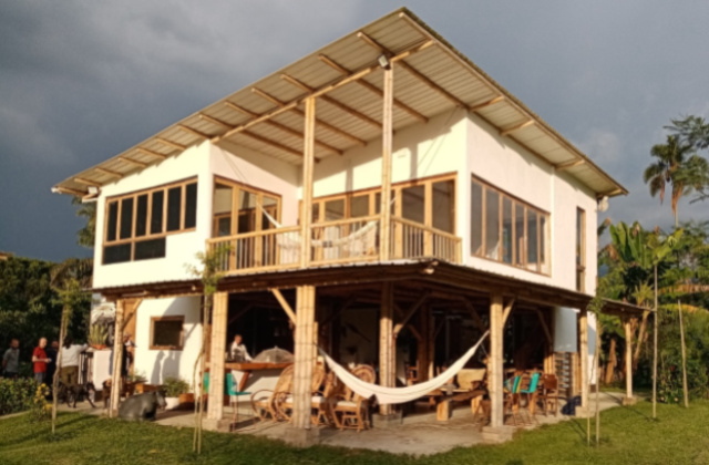 Acosta y su esposo, Andrés Saffón, levantaron una casa ecoamigable de guadua, material abundante en el sector y mano de obra local. La construyeron con paredes de esterillas recubiertas de cemento, tienen baño seco (funciona como una compostera y posee un calentador solar.