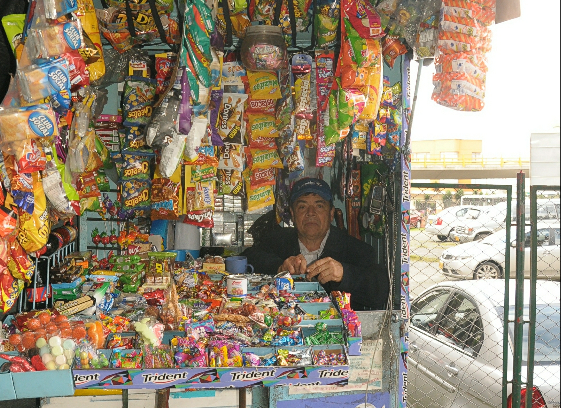 Caminar las calles de Manizales y encontrarse un puesto de dulces en cada esquina no es curioso, pero sí lo es cuando el cliente busca al vendedor y no lo ve porque este se camufla en los empaques de mecato. Se oye la voz que sale del kiosko, y tras ella, el rostro del comerciante que se mueve rodeado de chicles, gomas y toda suerte de antojos, como si fuera uno de ellos. Son parte del paisaje, viven entre dulces, para vender y a la vez protegerse del clima, sea lluvia o sol intenso. Llevan años ganándose la vida de esta forma e integran las curiosidades que se pueden ver cada vez que alguien se antoja de comprar, en un puesto de golosinas.