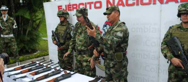 Les incautaron dos fusiles AK-47, un fusil galil, un radio de comunicación, tres granadas de mano y munición.