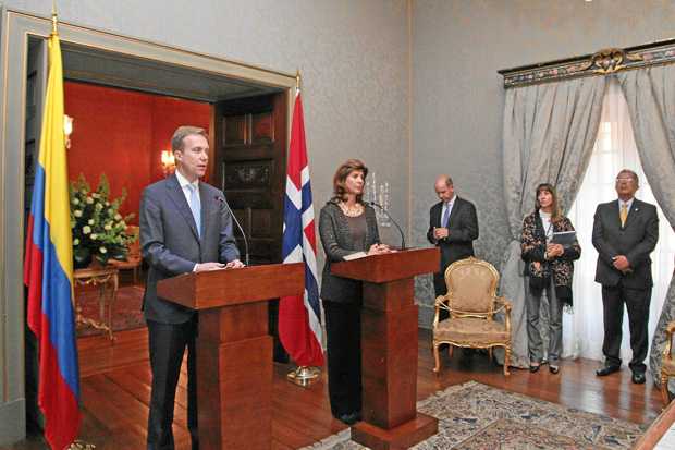 Luego de una visita al presidente Juan Manuel Santos, el ministro de relaciones exteriores de Noruega, Borge Brende, y la canciller María Ángela Holguín firmaron un memorando de entendimiento para establecer consultas políticas entre los dos países.