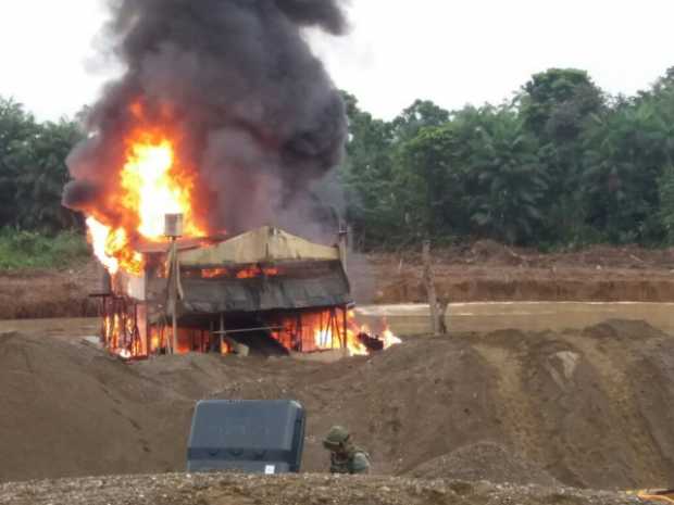 El oficial agregó que la estructura criminal instalaba dragas indiscriminadamente sobre el afluente y con el vertimiento de mercurio y cianuro aceleraban la extracción ilegal de oro.