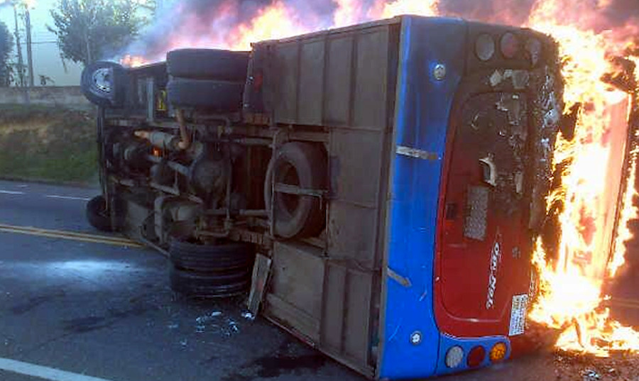 "En un principio se pensaba que sería algo pasajero, pero la situación se torno violenta, luego que los huelguistas no dieron el brazo a torcer cuando efectivos del Esmad de la Policía y del Ejército Nacional trataron de deslojar la vía. La pelea se recrudeció: atravesaron un bus y lo incineraron", sostuvo Ingrid Pillimué, habitante de Piendamó y quien se movilizaba hacia la ciudad de Popayán.