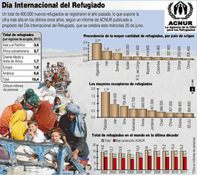 En el día mundial del refugiado, que se conmemoró ayer, la agencia de la ONU para esta cuestión (ACNUR) y otras organizaciones que trabajan en el mismo terreno alertaron de que cerca de 800 mil personas se vieron obligadas a abandonar su hogar durante el pasado año, la mayoría debido a la persecución y la violencia.
