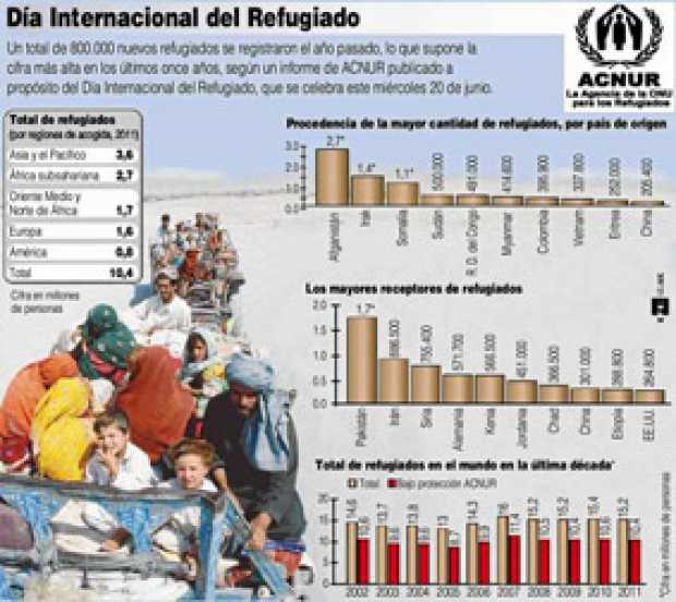 Los nuevos conflictos en Siria, Mali, Costa de Marfil o Libia, y el recrudecimiento de otros ya existentes, especialmente en África Oriental, multiplicaron la cifra refugiados en el mundo durante el 2011, considerado el peor en la última década.