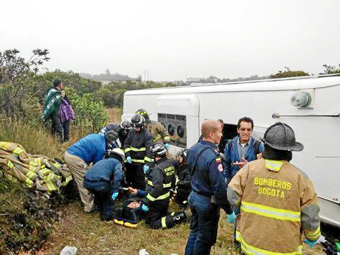 El Cuerpo Oficial de Bomberos de Bogotá reportó que ayer en la tarde un bus de servicio especial se accidentó en el kilómetro 10 vía Bogotá-Choachí, donde resultaron heridas 30 personas.