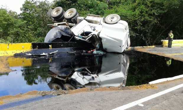 Según las primeras versiones en este caso al parecer se presentó una falla mecánica y el conductor no pudo controlar el camión el cual dio varias vueltas y parte de su carrocería cayó al lecho del río Pecuca.