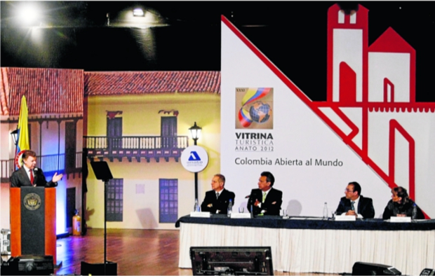 La mayor feria colombiana de turismo, que fue inaugurada ayer en Bogotá por el presidente Juan Manuel Santos, y el vicepresidente ecuatoriano, Lenin Moreno. En la edición XXXI de la Vitrina Turística, Ecuador es el país invitado con un pabellón de 500 metros cuadrados en el que presenta sus atractivos: selva amazónica, montañas andinas, pueblos indígenas y sobre todo sus islas Galápagos. En un área de 25.000 metros cuadrados, en la Corporación de Ferias y Exposiciones (Corferias) de Bogotá, se reunirán hasta el próximo viernes profesionales del sector, operadores de congresos, mayoristas, agencias de viajes y aerolíneas de 32 países de América, Europa y Asia.