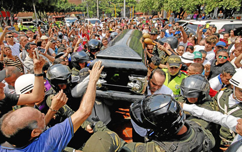La larga fila de vehículos era encabezada por una carroza fúnebre de color blanco en la que iba el féretro de López, y a la que le abrían paso entre la gente motociclistas de la Policía.